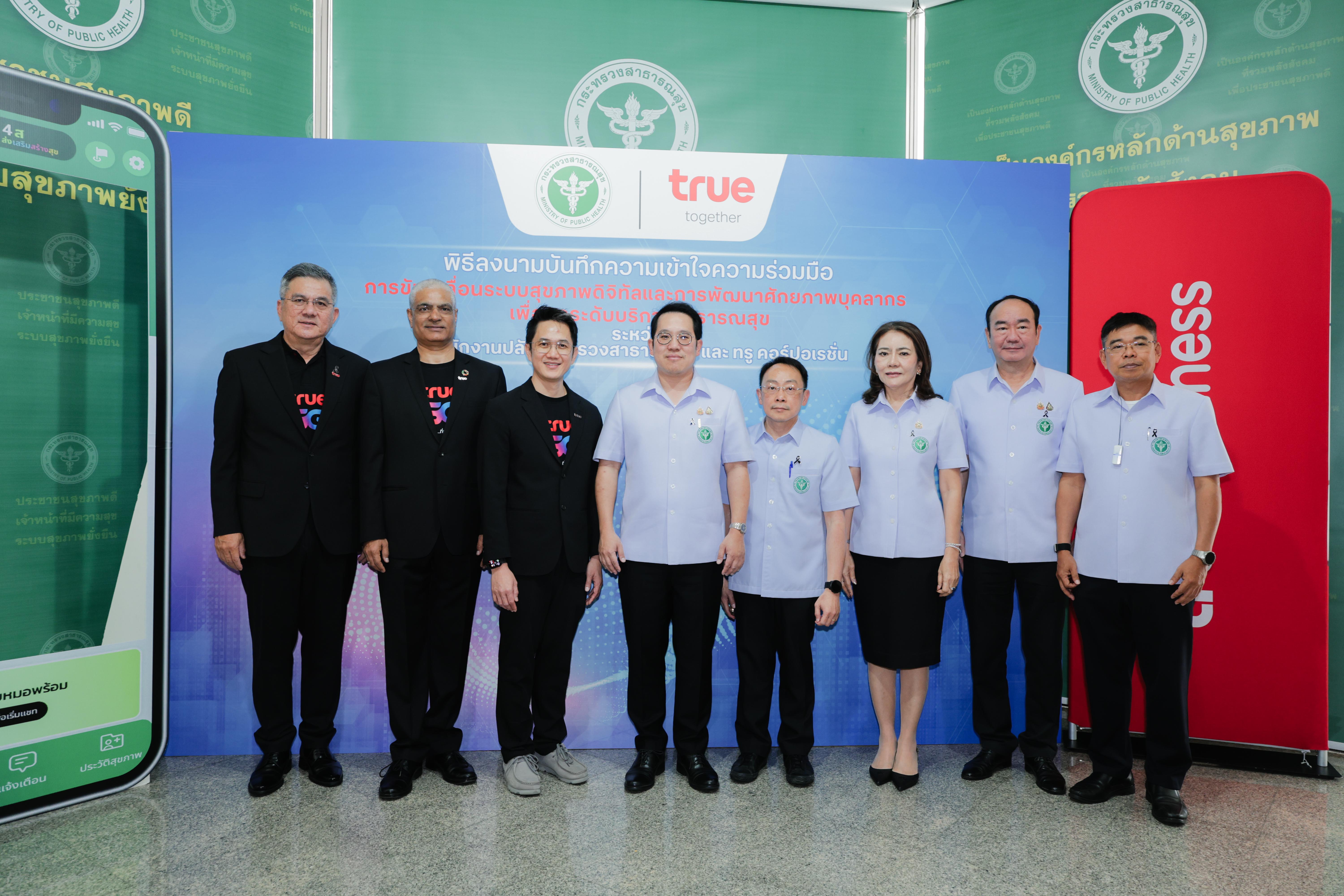 Under this Memorandum of Understanding for driving the digital health system and enhancing healthcare personnel potential to elevate public health services, the Office of the Permanent Secretary for Public Health and True Corporation will collaboratively drive digital health policies into tangible action in three core pillars including
